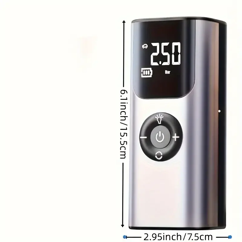 Product Name | 12V DC 150PSI Cordless Tire Pump with Dual Display Portable Air Compressor Car Tire Inflator for Bike Motorcycle Car Tires Balls | ||||||