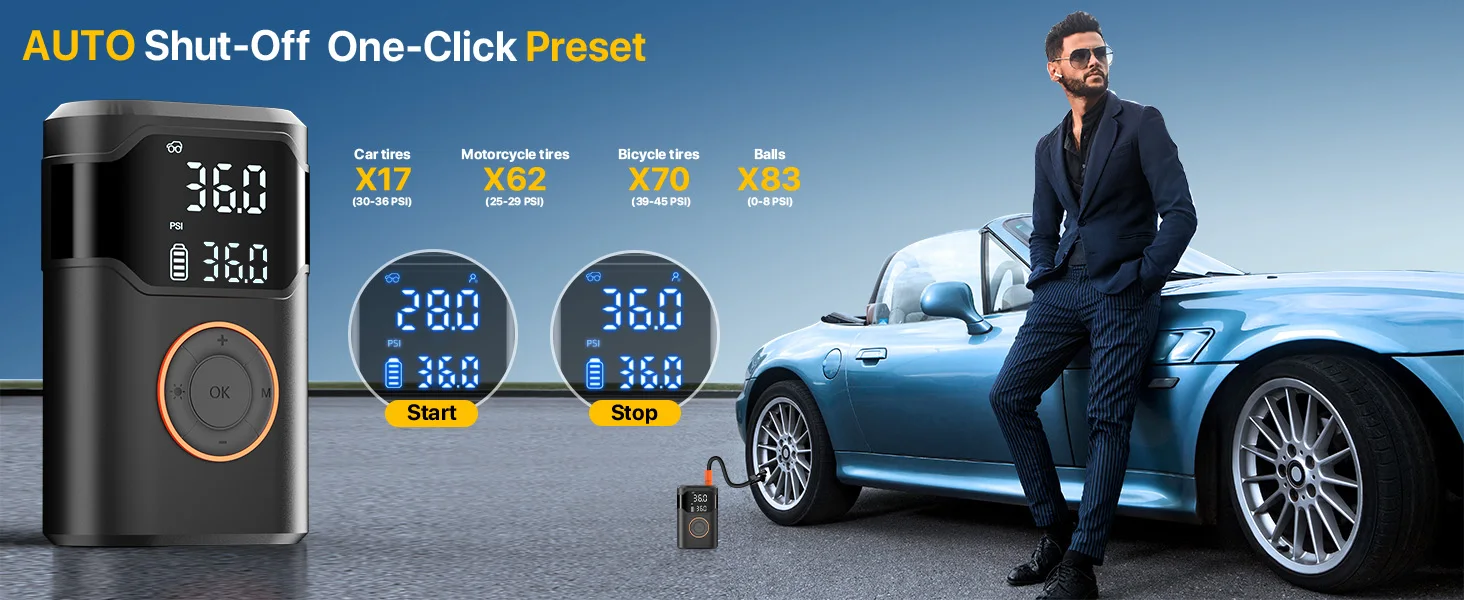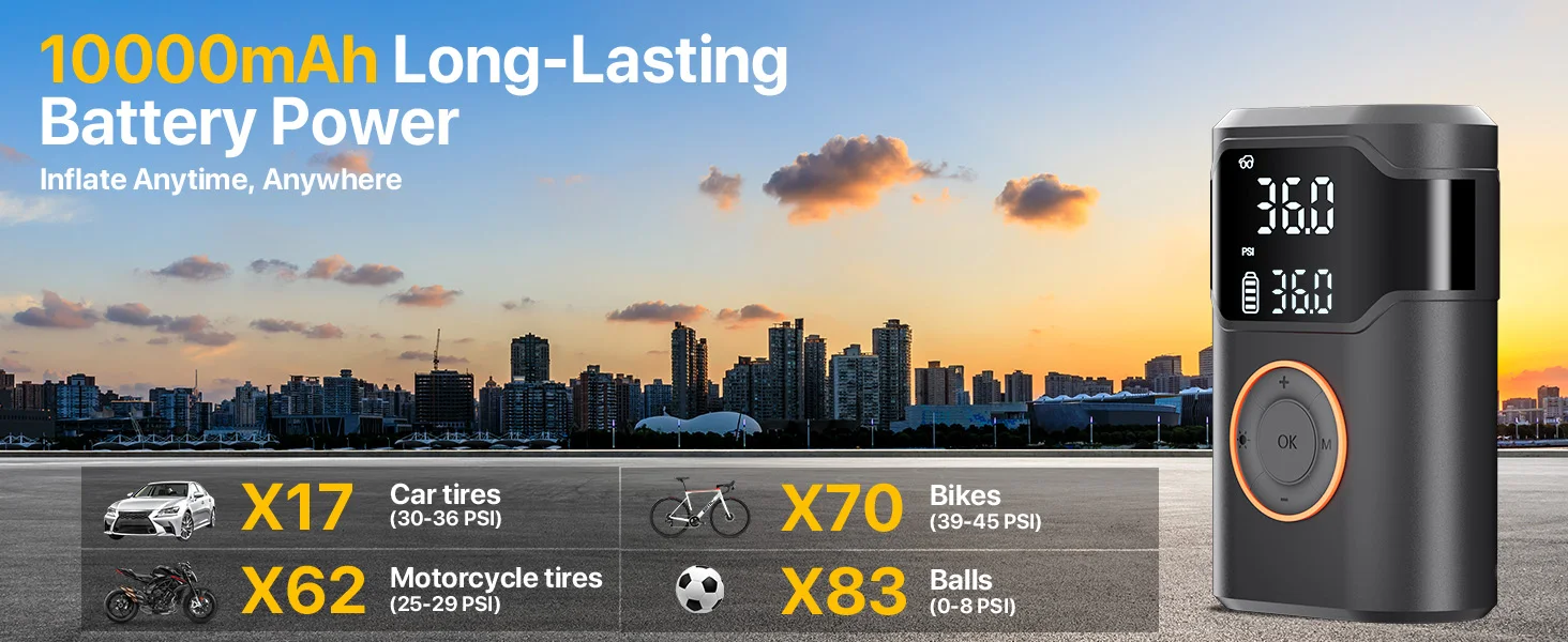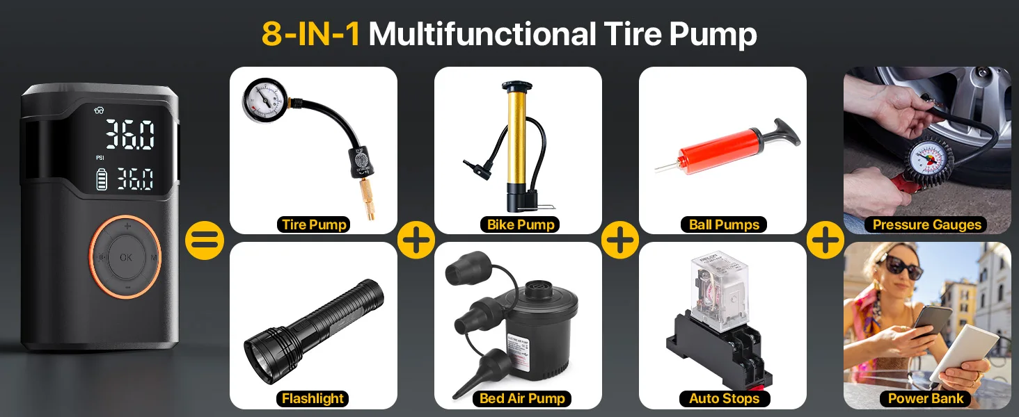 Functions | LCD Display 4000mah power bank. SOS flash led light. air pump car tire inflator | ||||||