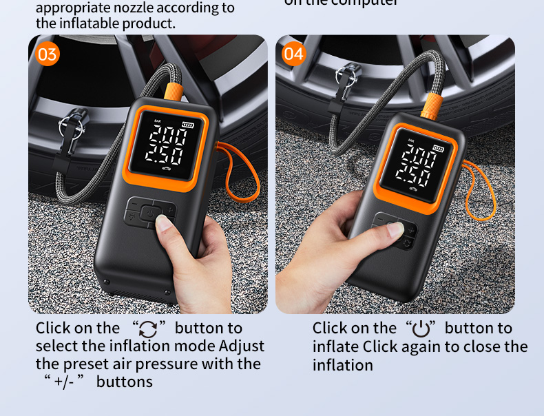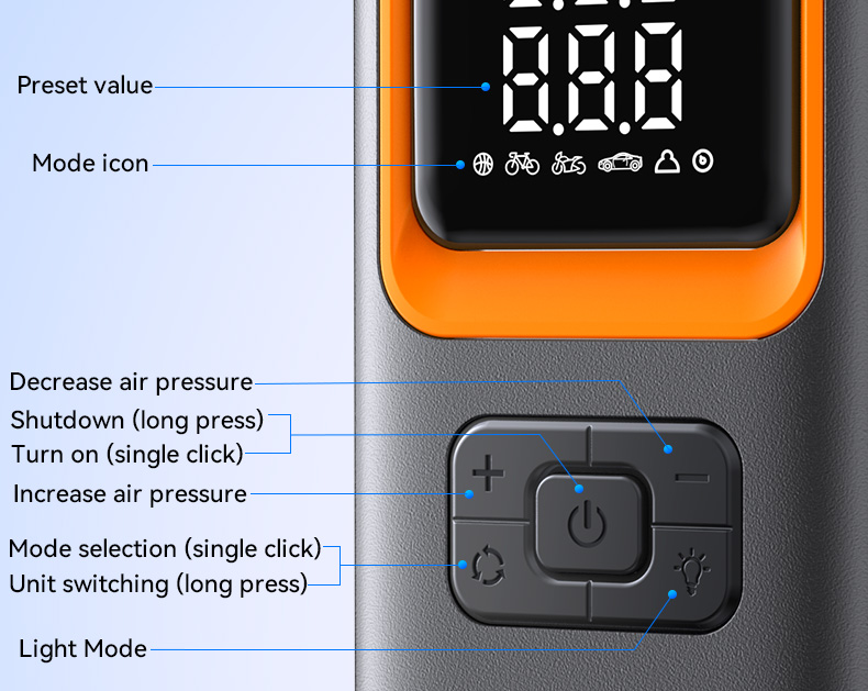 150PSI Max Pressure Fast inflation for car motorcycle bike tires