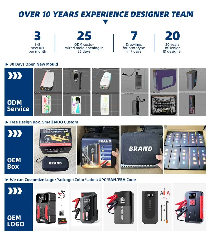 • Hot Selling 2000A Multi-function Portable Car Battery Jump Starter Power Bank with Lithium Battery for Truck & Motorcycle