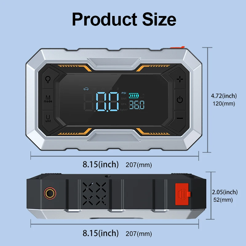 Product Name | Multifunctional 4 in 1 Car Air Pump Tire Inflator with Jump Starter 6000mAh Power Bank for Emergency Use | ||||||