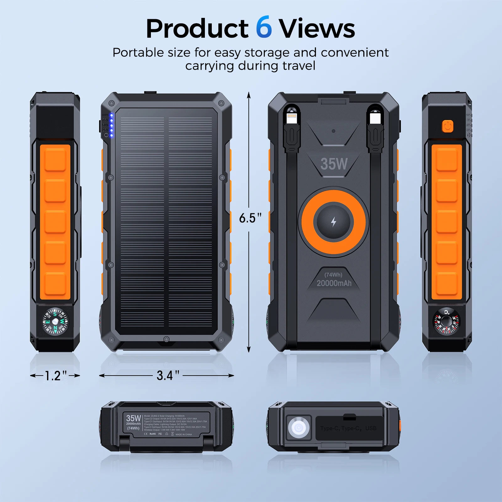 20000mAh Power Bank for Smartphones with and Solar Charging
